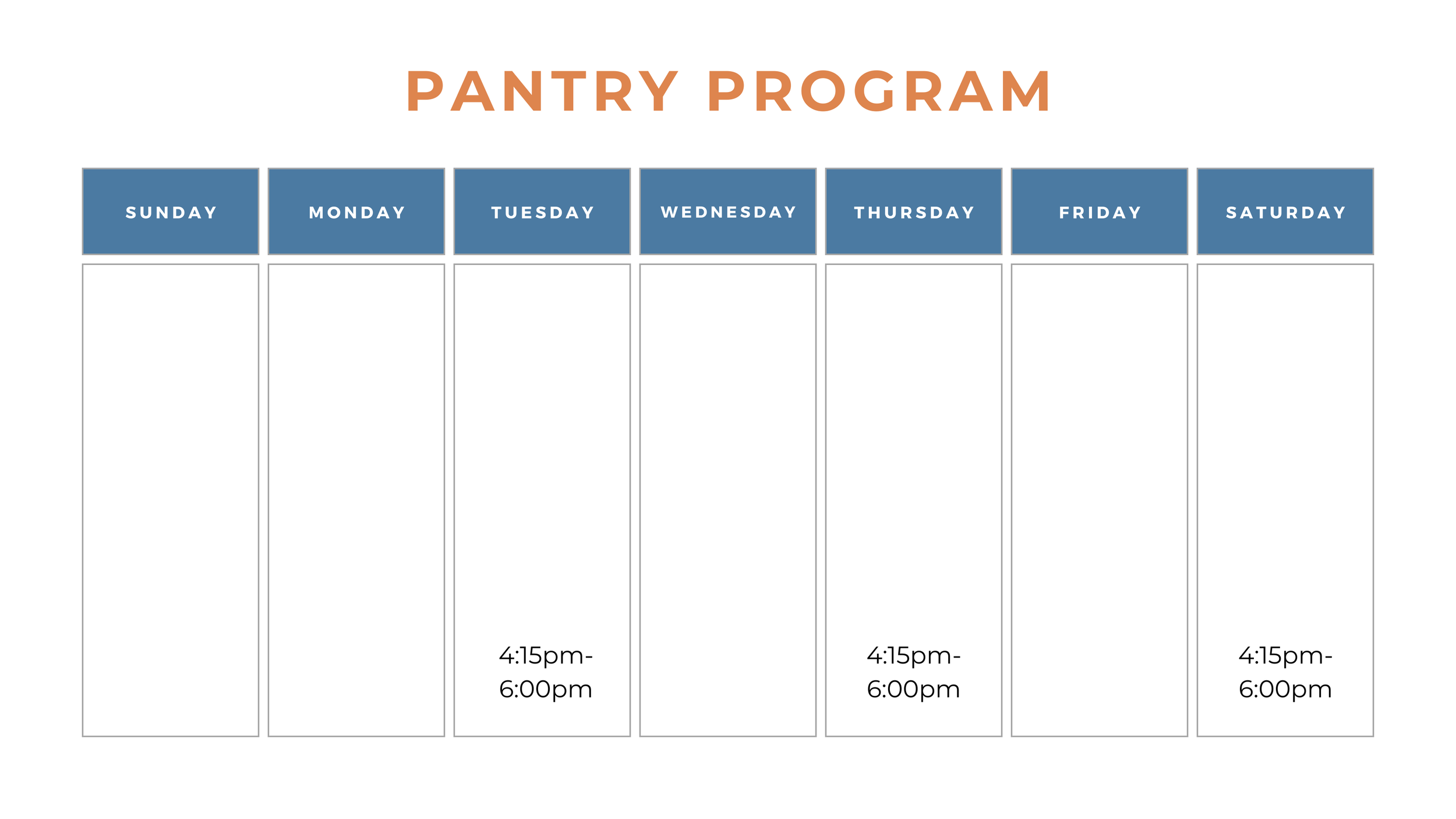 From our Centre, we also run a Pantry Program, like a mini grocery store that uses a points system for shopping. Clients can come and pick up food items (like fruits and veggies, packaged foods, and granola bars) to take with you. Operating hours are Tuesday, Thursday, and Saturday between 4:15pm-6:00pm. Psst! If you bring your own bag, we give you extra points to spend.